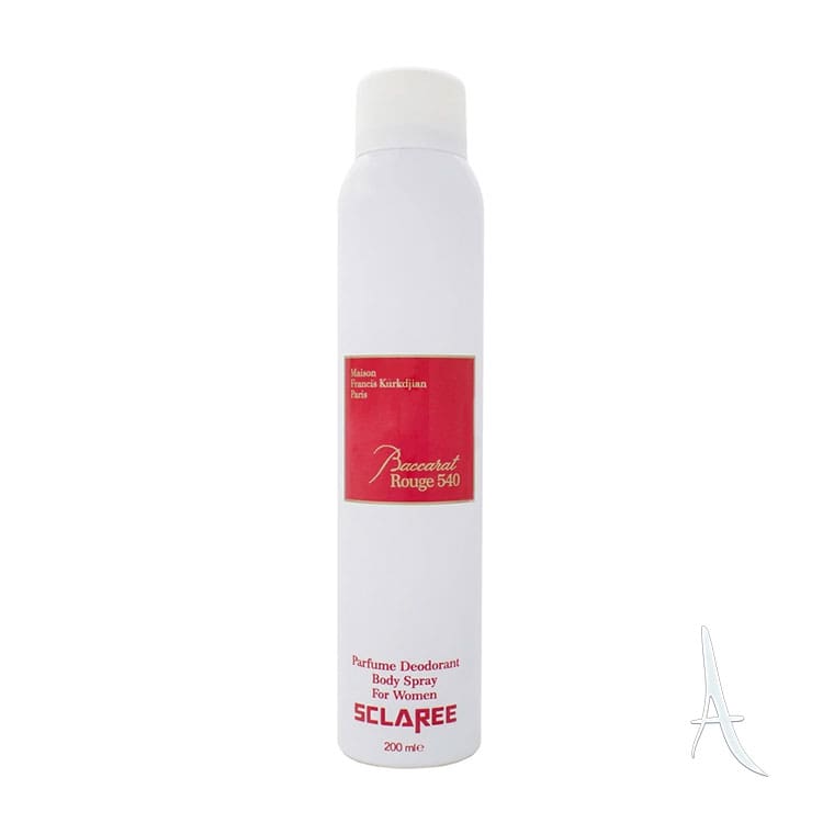 اسپری زنانه باکارت رژ 540 میسون فرانسیس کورکجان اسکلاره محصولی از برند ایرانی اسکلاره است. این محصول یک اسپری خوشبو کننده بدن با رایحه گرم و شیرین بوده که جایگزین مناسبی برای عطر جهت استفاده روزانه به شمار می رود. رایحه این اسپری بدن شبیه به عطر لوکس باکارت رژ 540 از برند میسون فرانسیس کورکجان است.خانواده بویایی: عنبری، گلینت های بالایی: زعفران، یاسمننت های میانی: چوب عنبر، عنبر سائلنت های پایه: سدر، نراد