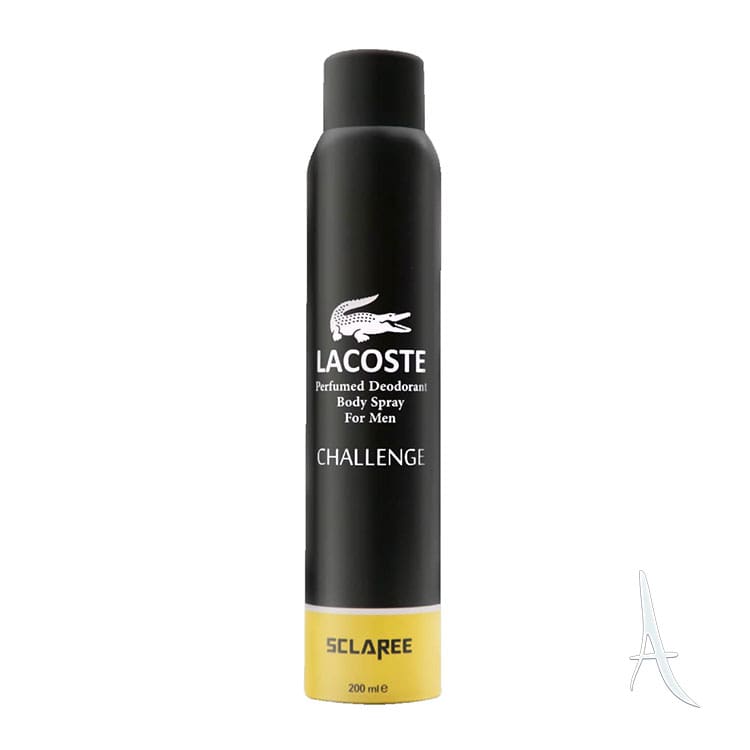 اسپری مردانه چلنج لاکوست اسکلاره محصولی از برند ایرانی اسکلاره است. این محصول یک اسپری خوشبو کننده بدن با رایحه خنک و تلخ بوده که جایگزین مناسبی برای عطر جهت استفاده روزانه به شمار می رود. رایحه این اسپری بدن شبیه به عطر چلنج از برند لاکوست است.خانواده بویایی: مرکباتی، آروماتیکنت های بالایی: لیموی آمالفی، نارنگی و ترنجنت های میانی: برگ بنفشه، اسطو خودوس و زنجبیلنت های پایه: چوب آبنوس، چوب درخت ساج